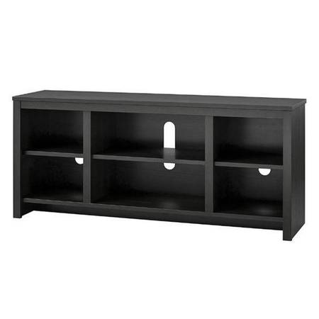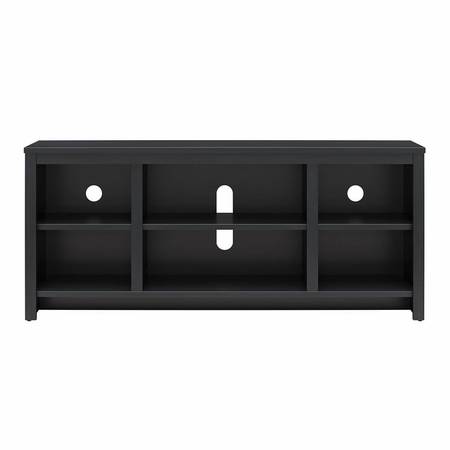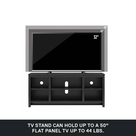 Update your entertainment experience with the Mainstays Parsons TV Stand for TVs up to 50" wide. This simple, modern TV Stand is crafted with clean lines and a minimalist aesthetic and boasts six open shelves for displaying media devices or decor. Say goodbye to cable clutter with convenient wire management cutouts in the back four of the shelves. Constructed from laminated engineered wood, it offers sturdy support for your TV while seamlessly blending into any modern living space. This TV Stand requires assembly upon delivery. Two adults are recommended for proper assembly. Once assembled it measures to be: 19.7"H x 45.5"W x 15.75"D.