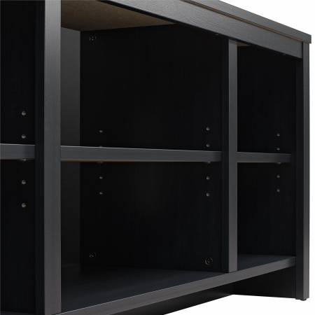 Spacious Shelving: Features six open shelves for displaying media devices or decor