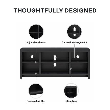 SIMPLE AND AFFORDABLE: Crafted from sturdy engineered wood, this stand assembles easily and fits seamlessly into modern living areas