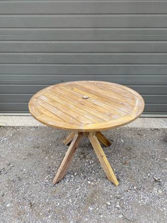 Brand new dining patio table in the box Apx 42” wide and 32” tall . Outdoor wood table. $75
