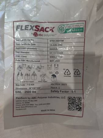 Used Super Sacks. Used for laundry detergent. 36" x 36" x 36" some are 36" x 36"x 48". Openings top and bottom. Have loops for filling. Excellent condition. We have about 100-150 of them. Perfect for landscaping, hold soil real well. Many uses. show contact info