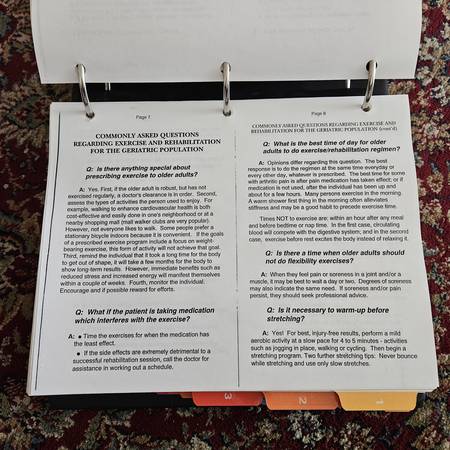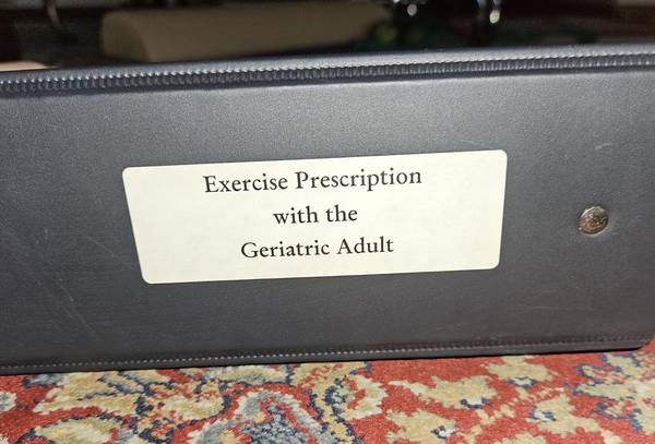 Vintage 1990s "EXERCISE PRESCRIPTION WITH THE GERIATRIC ADULT." 300 pages of exercises for the geriatric adult. In good condition. Cash only.