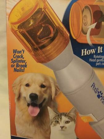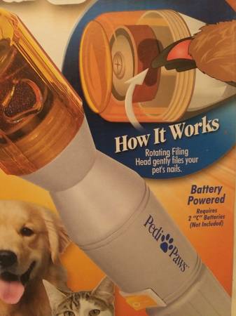 Pedi Paws Incredible Pet Nail Trimmer Battery Powered Fast Easy Gentile NEW in Box Requires C Batteries. Comes with 1 attached and 1 spare rotating file wheel. Brand New In Box with all original...
