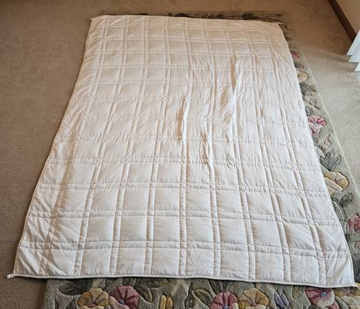 Pre-owned, used once. BALOO WEIGHTED BLANKET. 57" x 78". White. 15 pounds. In very good condition, clean, no stains/smells. 100% cotton throughout. $25, OBO. Cash only.