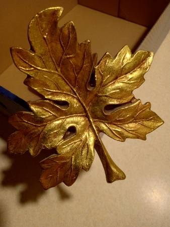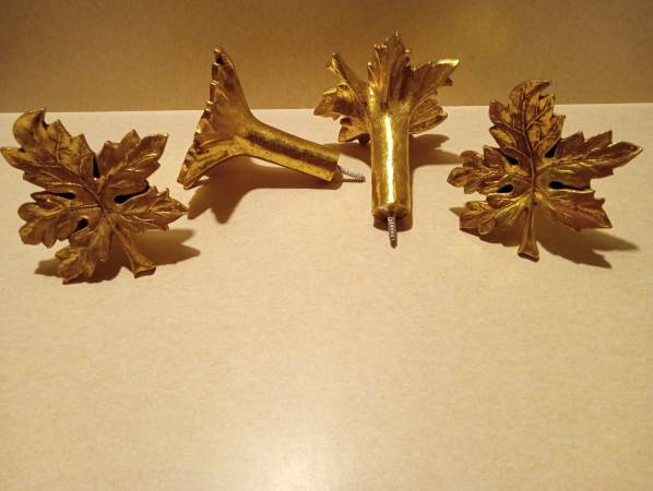 Molded maple leaf curtain finials in gold finish. Screw on mounting, 4" projection from wall, 2 1/2" stem length. Rare hard to find item. $4.00 each or 10 available for $30 In person cash pick up.