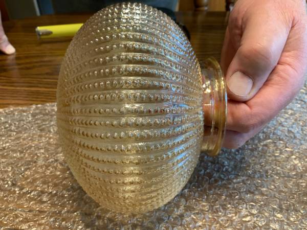 4 light amber color “tulip” shaped shades and 1 light amber color center globe. Comes from pet/smoke free home. No chips or cracks.