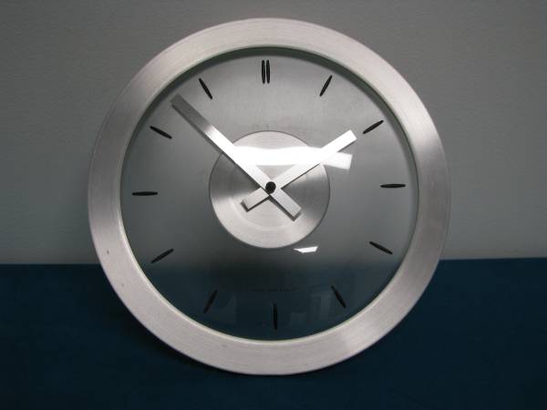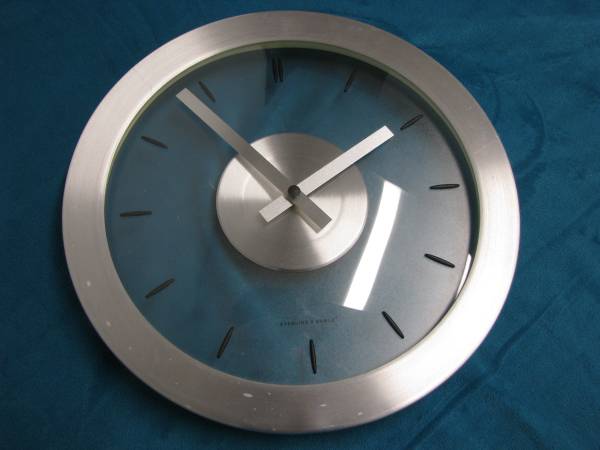 WALL CLOCK / Clear Round / Sterling & Noble ............... (# B-3200) Manufacturer : "STERLING & NOBLE" Construction : Aluminum & Plastic Features : Art Deco Style , Quartz Movement ,...