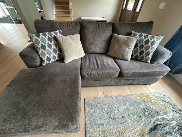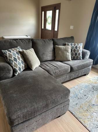 Ashley Furniture, L-sectional couch can be re-arranged to the right or left to fit your living room space. Photo is showing a left arrangement. No pets or children.