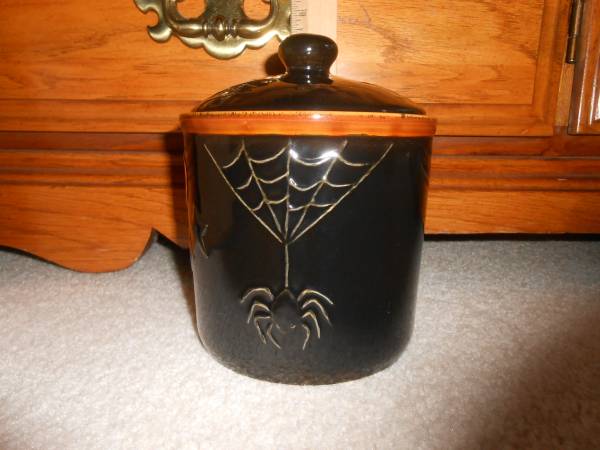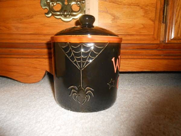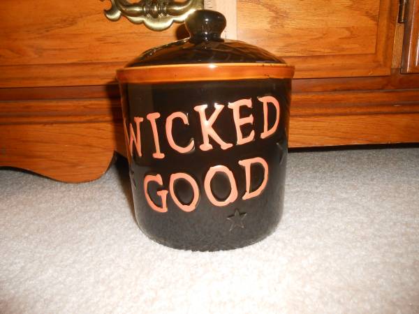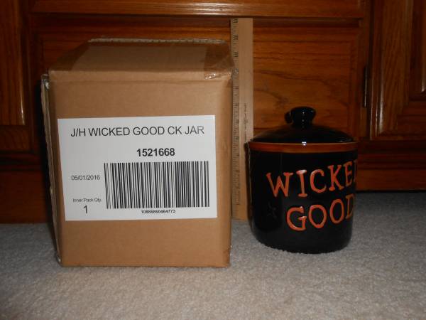 2016 Yankee Candle Boney Bunch WICKED GOOD cookie jar/Jar Candle holder in excellent condition with no chips or stains. The Jar measures 7" tall with lid on and has a 4.75" diameter. Can be used to hold medium or large Jar candles or cookies and candy. Lid has rubber seal so it can keep food fresh. "WICKED GOOD" written on Jar and spider web design on sides of Jar and on the lid. All original packaging is included. Nice Halloween or fall decor. Smoke free, pet free home.