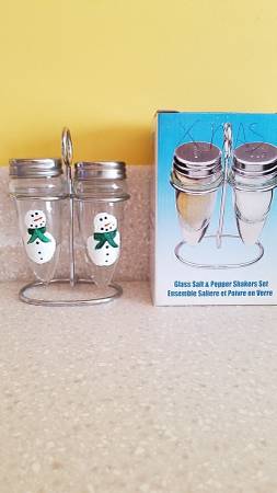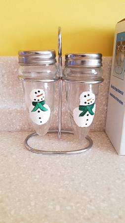 Pair of snowman salt & pepper shakers with the holder in excellent condition. Smoke free, pet free home.