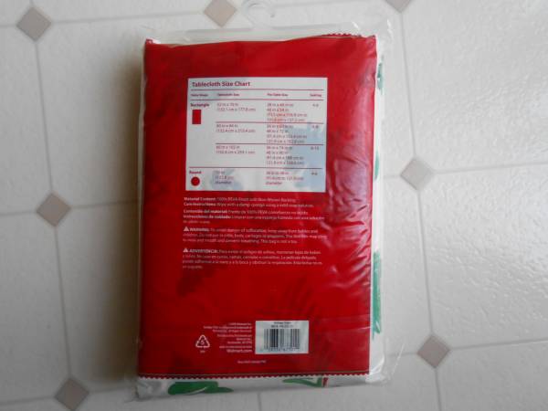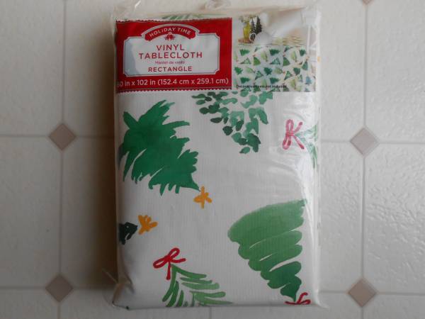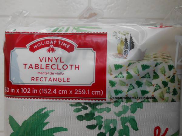 Holiday Time Christmas/Holiday vinyl tablecloth, 60"×102", New in sealed package. PVC free tablecloth features Christmas trees. Smoke free, pet free home.
