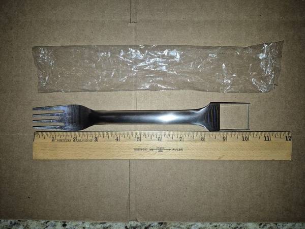 2 In 1 Stainless Steel Watermelon Fork & Cutter, 10", new, open box. Can also be used for other melons, mango, etc. Smoke free, pet free home.