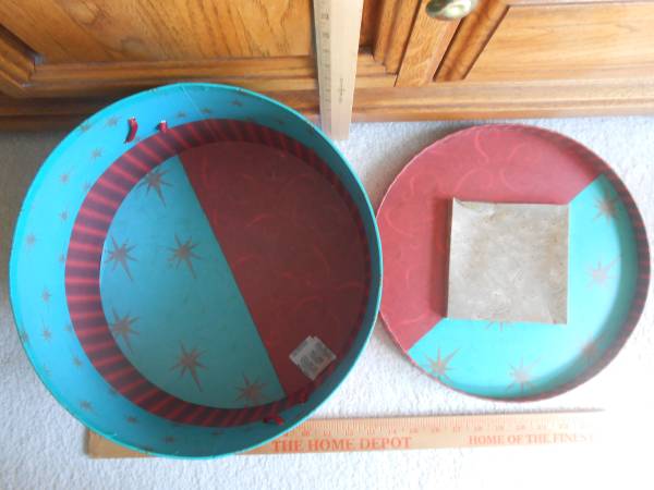 Lot of 2 gift, storage or hat boxes with lids. The Christmas box is in very good condition. The brown cardboard box is in fair condition. Smoke free, pet free home.