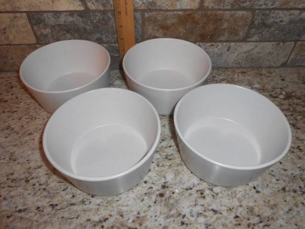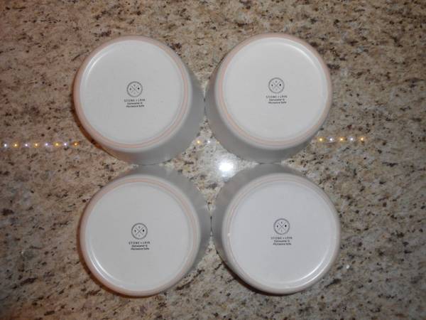 Stone + Lain Stoneware 4 Pc Soup/Cereal Bowls, 5.75", Snow White, New, Open Box. The set is dishwasher and microwave safe. Heavy set, weighs almost 5.5 pounds. Smoke free, pet free home.