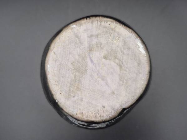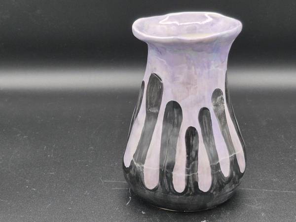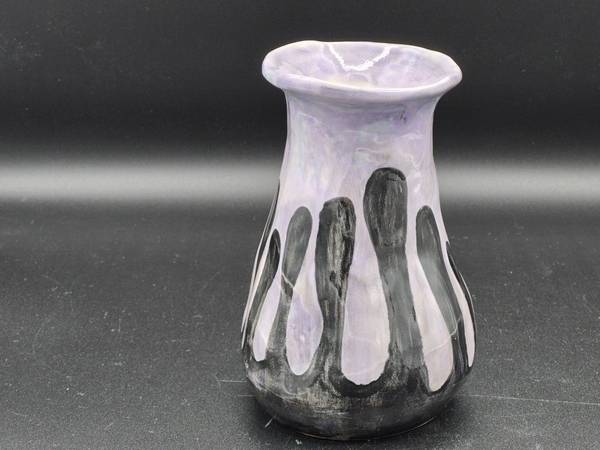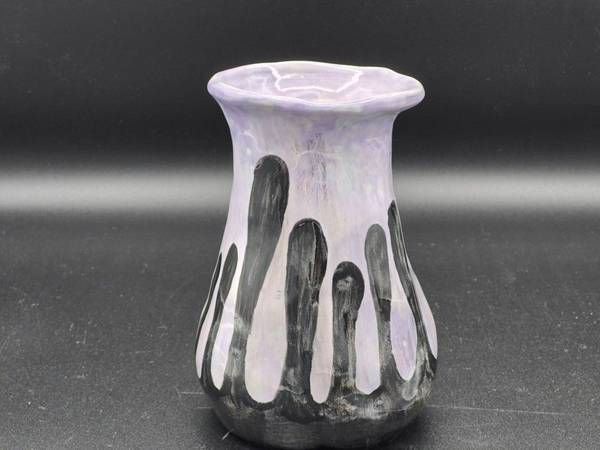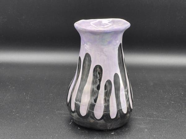 Studio Art Pottery Vase, Glazed, Black W/Purple Drip, 5.25", Initialed LB on bottom. Vase measures 5.25" tall, has just over a 2.5" opening and a 3.25" base. Heavy, weighs over 1 pound. Smoke free,...