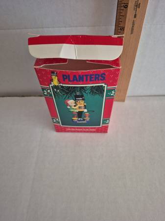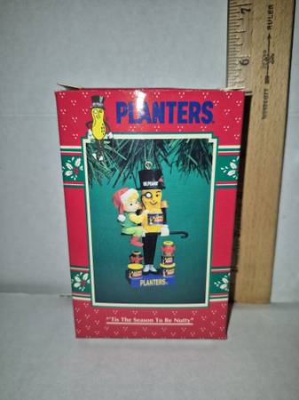 Vintage Enesco Planters Mr. Peanut Ornament, 'Tis The Season To Be Nutty, in excellent condition. The box is in very good condition, there is some creasing on the top flap. Smoke free, pet free.
