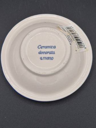 Vintage Italian ceramic handpainted ashtray or trinket bowl in excellent condition. Bowl has a 5.25" diameter and stands just over 1" with a bit of a rolled rim. Colorful sunflower and leaves. Smoke...