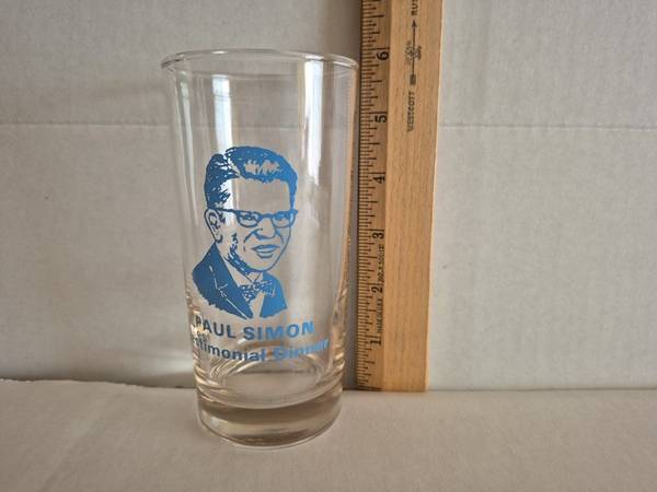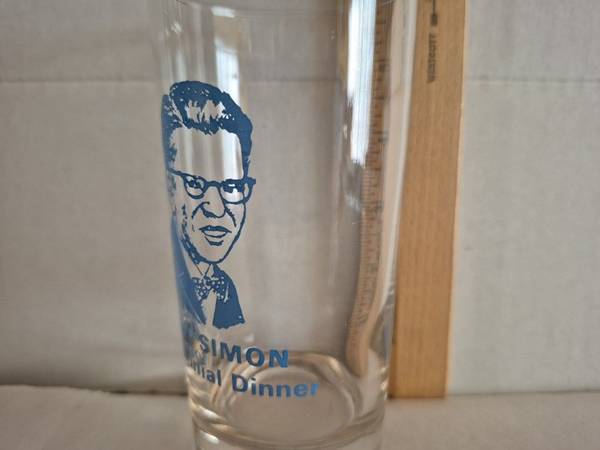 Vintage Illinois Senator Paul Simon Testimonial Dinner drinking glass, in excellent condition, no chips, cracks or stains, graphics are excellent. Smoke free, pet free home.