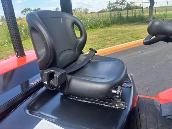 Very comfortable suspension seat for the operator, along with all the safety features you could want in a forklift. Includes factory warranty!
