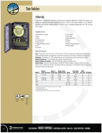 For Sale 24 Hour Dial Time Mechanical Switch - Intermatic T103 - 40 AMP Resistive (per pole) - Clock Motor: 125 Volts 60 HZ - HP Rating: 2 - NEMA 1 indoor steel case - Trippers Included: 1 ON &...