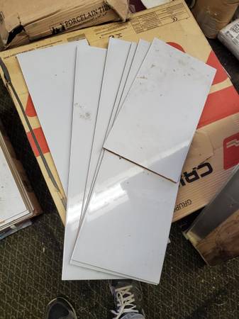 Crafters?? Someone need remaining tile. 5 pieces of glossy white, 8" x 23.5" and a 1/2 piece. $10 for all.