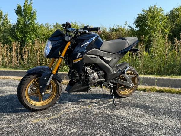 ISelling our 2023 Kawasaki Z125 Pro motorcycle. Blue and Gold colors. Runs and rides great, has about 1300 miles, mileage will go up , I typically put a few miles a week on it. Has pro taper bars, Yoshimura exhaust. Sounds awesome.