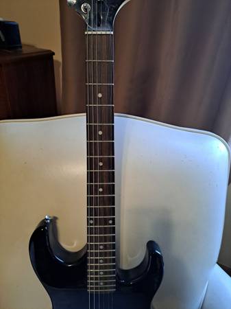 I am selling one used Spectrum black electric guitar with tremolo. This guitar has normal wear. Thank you for taking a look!