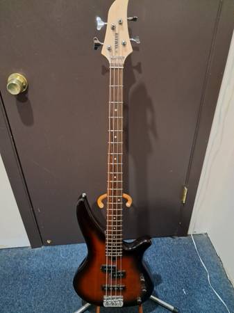 Yamaha RBX170Y Bass Guitar. Sunburst with p-bass pickup and a j-bass pickup, individual volume controls and one master tone control. Rosewood fretboard. Great shape but missing one inlay dot at the...
