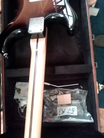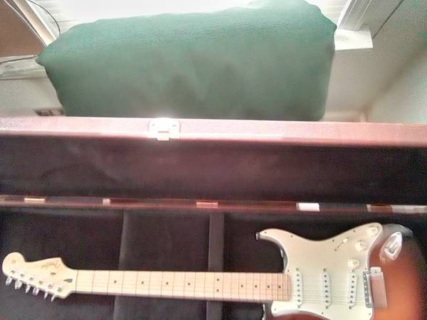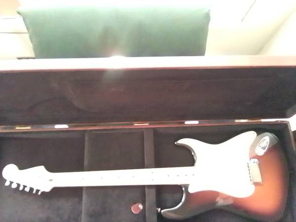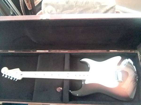 Fender Stratocaster Anerican Special with 57 Reissue 2 3/16 inch bridge spacing and roller saddles and ash tray. With Eric Clapton tremolo block. 22 fret V neck and custom Loud pickup set. Whammy bar and spring. One hell of a player and nice case. Too Cheap.
