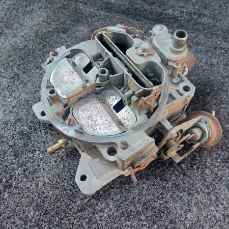 1972 Pontiac GTO Rochester Quadrajet carburetor. Correct for a 1972 Lemans GTO Firebird or Trans Am with a 400 c.i. / Automatic. Core for rebuild.