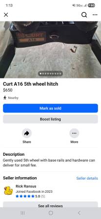 Great condition 5th wheel hitch comes with base rails and hardware. Can deliver for small fee