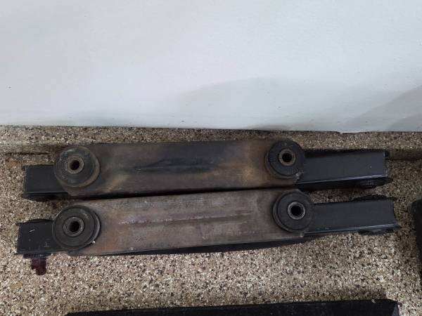 1965-1968 Chevy Impala, Biscayne, Caprice rear upper and lower control arms. There is one pair of upper arms and two pairs of lower arms. One of the pair of the lower arms has the holes for the F41...