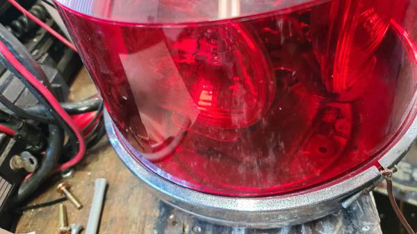 UP FOR SALE IS OUR BEAUTIFUL LIKE NEW USED DIETZ 2-11 4 BULB ROTATING RED BEACON. WE THOROUGHLY CLEANED AND POLISHED THE CHROME AND IT SHINES BRIGHTLY. THE RED FACTORY 🏭 DIETZ 2-11 RED DOME IS COMPLETELY DAMAGE FREE AND HAS A CLARITY RATING OF 10/10. THE POWER CORD IS APPROXIMATELY TWO FEET LONG AND WIRED PROPERLY.