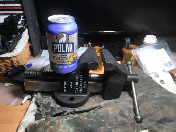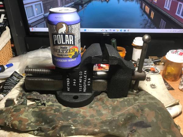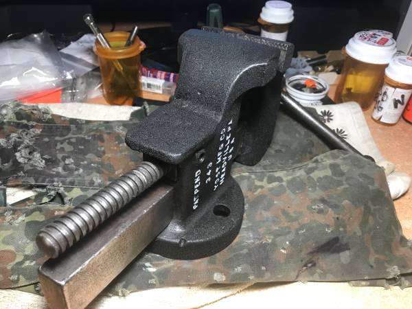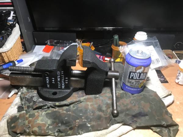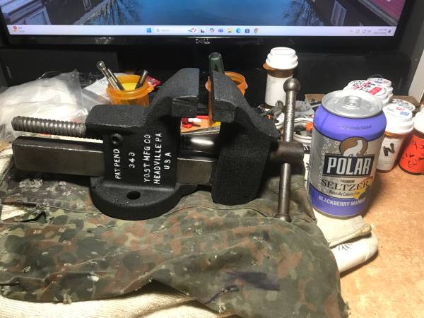 Good condition made in Meadville PA by Yost . 3 inch jaws good condition . better then any new big box store vise.