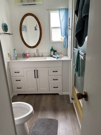 this is a Double Wide 2 Bedroom and 2 bath home, it is located in Lakeland Florida in a 55+ gated community with a swimming pool right across the street and the recreation center is located right across the street. It is about an hour drive from Tampa and the coast, so no worries about hurricanes. It is COMPLETELY furnished with both bathrooms being updated with a new hot water heater and a newer furnace/AC it has a big beautiful enclosed front porch with its own AC. This house is great for retirement in Florida with only $650 a month association fee, which includes grass cutting and garbage. Utilities run around $75 a month so very affordable living whether it’s a permanent or winter home.