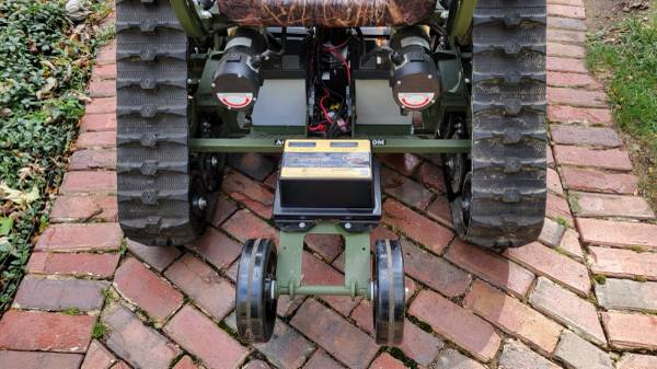 The Trackchair® STS includes the 20-amp battery charger, auxiliary tilt-on-the-fly mechanism, cushioned arm rests, fixed footrest (adjustable for height), Type I or Type I! tracks, rear stability wheels, lap seatbelt, dual-port USB charger, battery charger plug-in port, independent flip-up arms, and a torsion arm suspension system with automatic track tensioning.