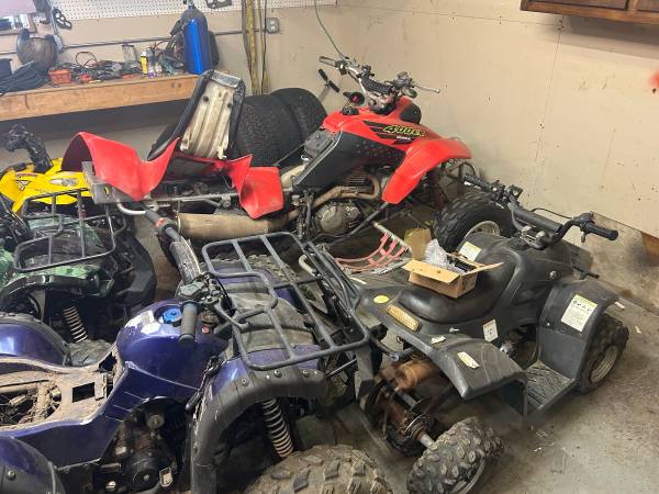 here we have two running adult mini bikes few running 110 atvs 1 400ex needs the headbolts tighten down but does run, askin $2000 or best off for all need room in my garage