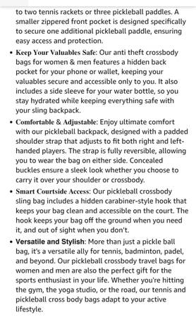 Neoprene Pickleball Bag - Pickleball Backpack | XL Tennis Bag With Adjustable Shoulder Strap | Pickleball Accessories | Crossbody Pickleball Bags For Women & Men | Tennis Backpack | Gifts for...