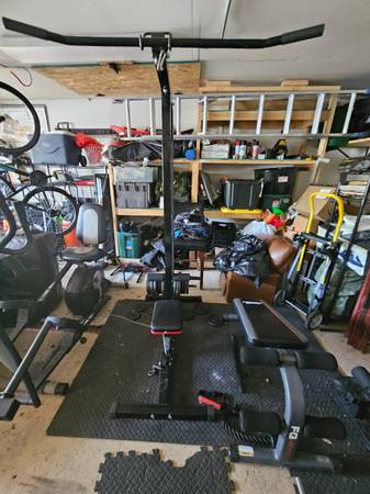 Take all benches and free weights for $600 or best offer or buy separately. Flat bench Squat rack Calf raise machine Pull down lat machine Other misc equipment