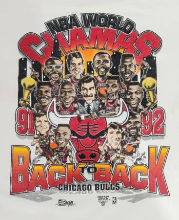Vintage Chicago Bulls '91-'92 NBA Back-2-Back World Champs T- Shirt Size XL Salem Tag Rare Call or Text #