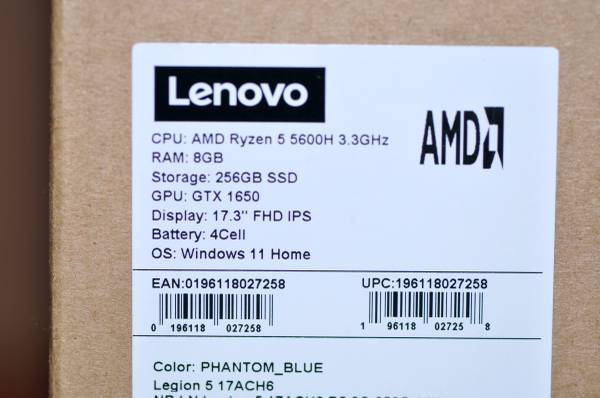 FOR SALE is a Brand NEW / Factory SEALED, Lenovo LEGION 5 17.3" Display / AMD Ryzen 5 5600H 3.3GHz / 8GB DDR4 Memory / 256GB NVMe TLC SSD / Geforce GTX 1650 / WINDOWS 11 Home ...