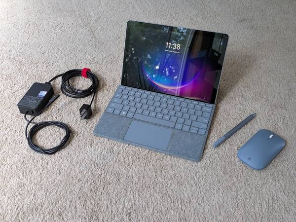 Includes Microsoft magnetic, folding, Type Case, mouse, and stylus all in matching 'Ice Blue' color. Tablet and all accessories are in excellent condition! Prefer meet-up to handle hand-off and...