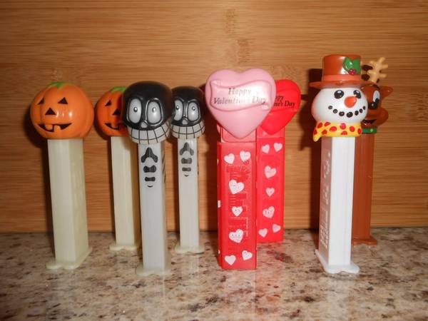 Lot of 8 Holiday PEZ Dispensers in excellent condition, no stains or scratches. The 4 Halloween dispensers glow in the dark and are made in Hungary. The 2 Valentine's Day dispensers are made in Hungary. The 2 Christmas dispensers are made in China. Smoke free, pet free home.