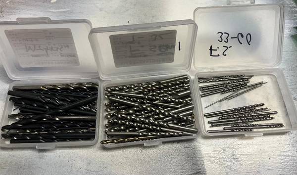 OVER 150 DRILLS OF VARIOUS SIZES ALL BRAND NEW. HIGH SPEED STEEL GOOD QUALITY FAST SPIRAL, SLOW SPIRAL, CENTER CUTTING, SCREW MACHINE, AND STANDARD ALL FOR $85 TEXT JOE