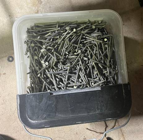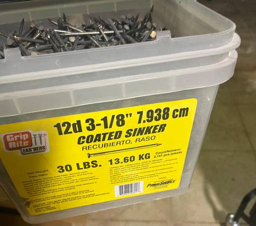 GRIP RITE 12D X 3-1/8" LONG COATED SINKER NAILS. 30# PAIL OVER 2000 NAILS TEXT JOE