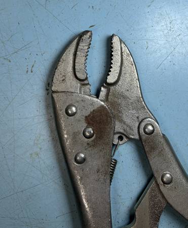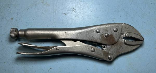 9” Locking Pliers. Manufactured by Lions Head. Old and used, but functions as good as new. Jaws are still in very good condition.