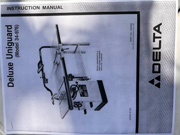 Over arm blade guard fits any table saw and allows up to 48” cuts to the right of the blade. Includes all attaching hardware to get your installation done fast. Includes accessory tray for blade tools, feather boards etc. Very clean as it was rarely used. Model 34-976. Clear Lexan blade shields to see your workpiece all the way through the blade.