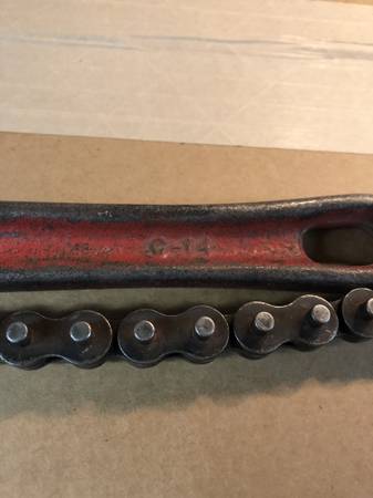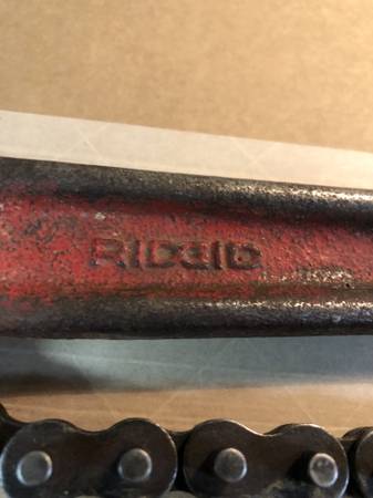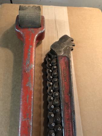Ridgid chain wrench C-14 with 18” chain. Ridgid Strap Wrench # 5 with 28” nylon strap Aluminum handle.