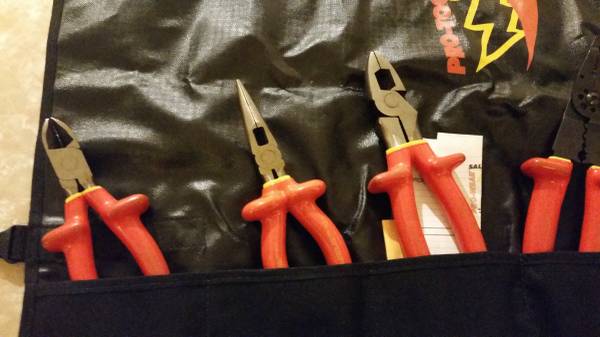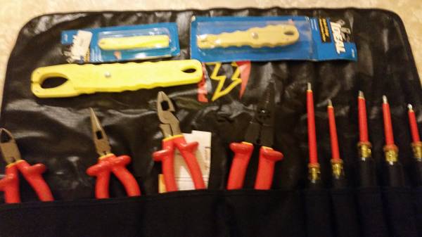 Like New- SALISBURY PRO-TOOLS 9-Piece- INSULATED TOOL SET, Double Insulated Electrician Tools ROLL CASE. Plus 3 fuse pullers. Around the house, More Electric Vehicles cars out there and these are the type of tools needed $200 .