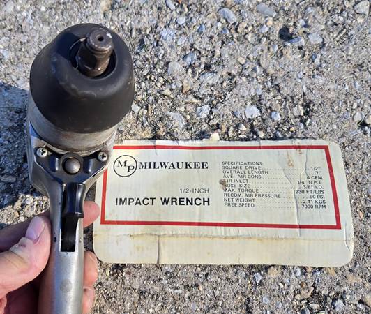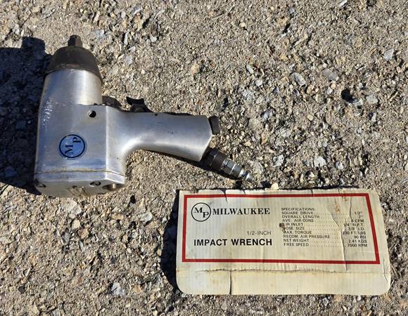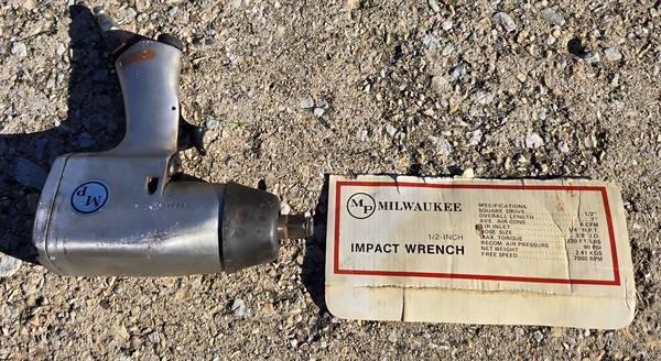 Like new Milwaukee 1/2-inch pneumatic impact wrench. The tool's information card lists the following specifications: